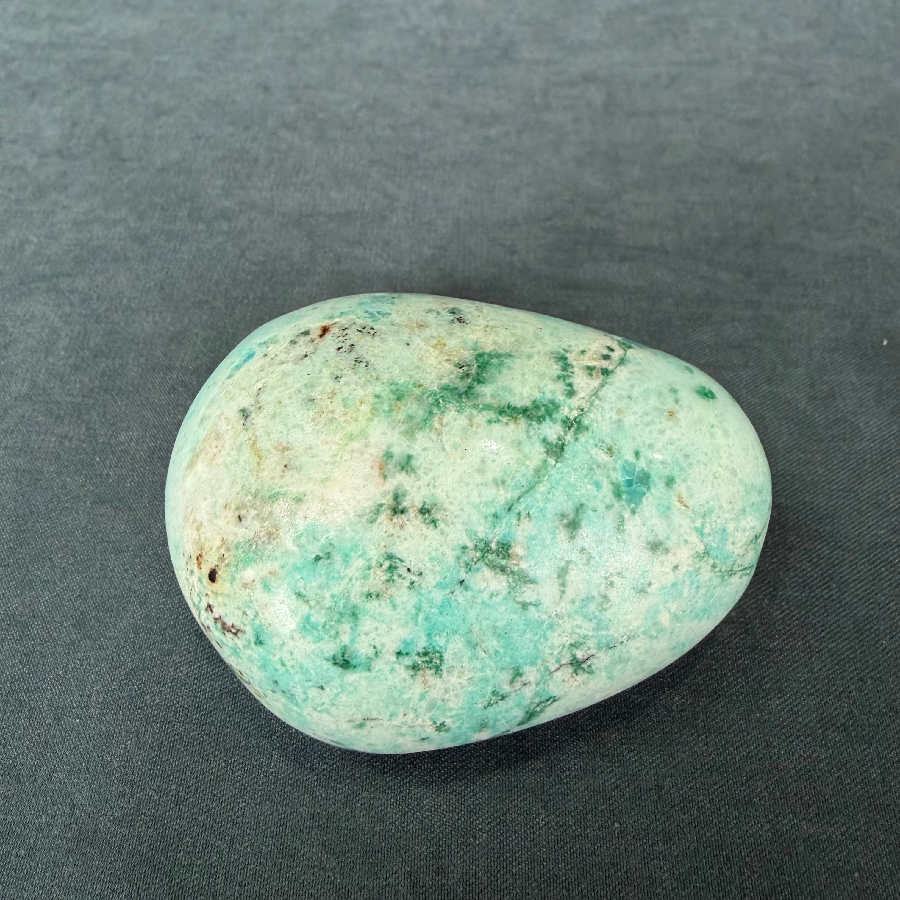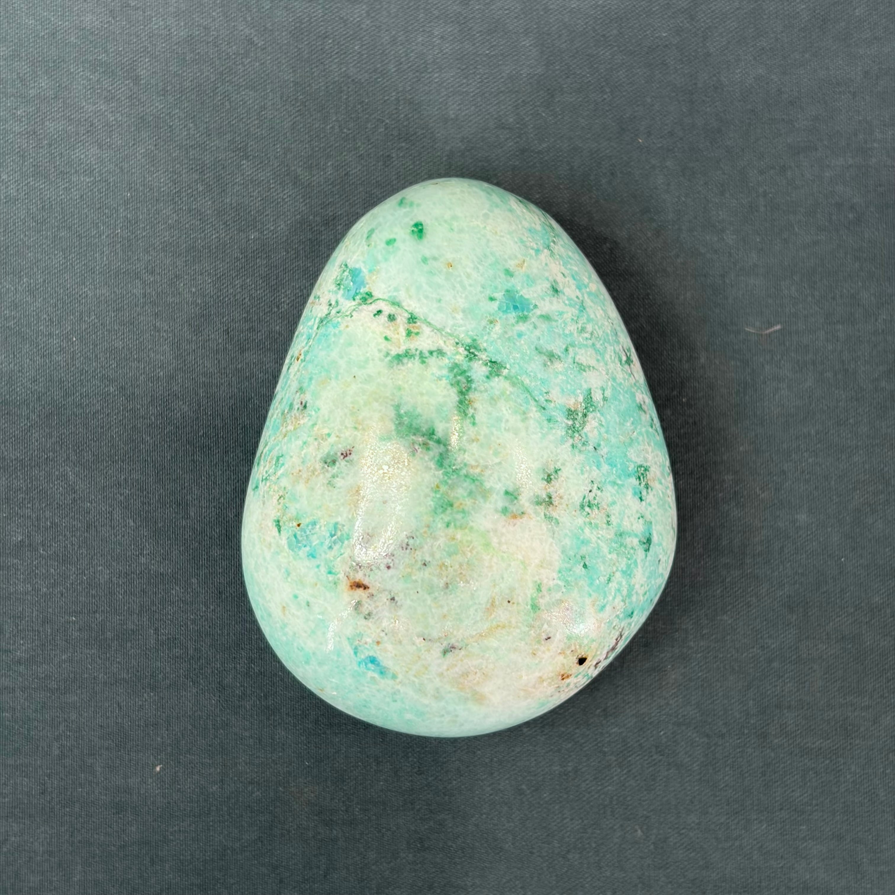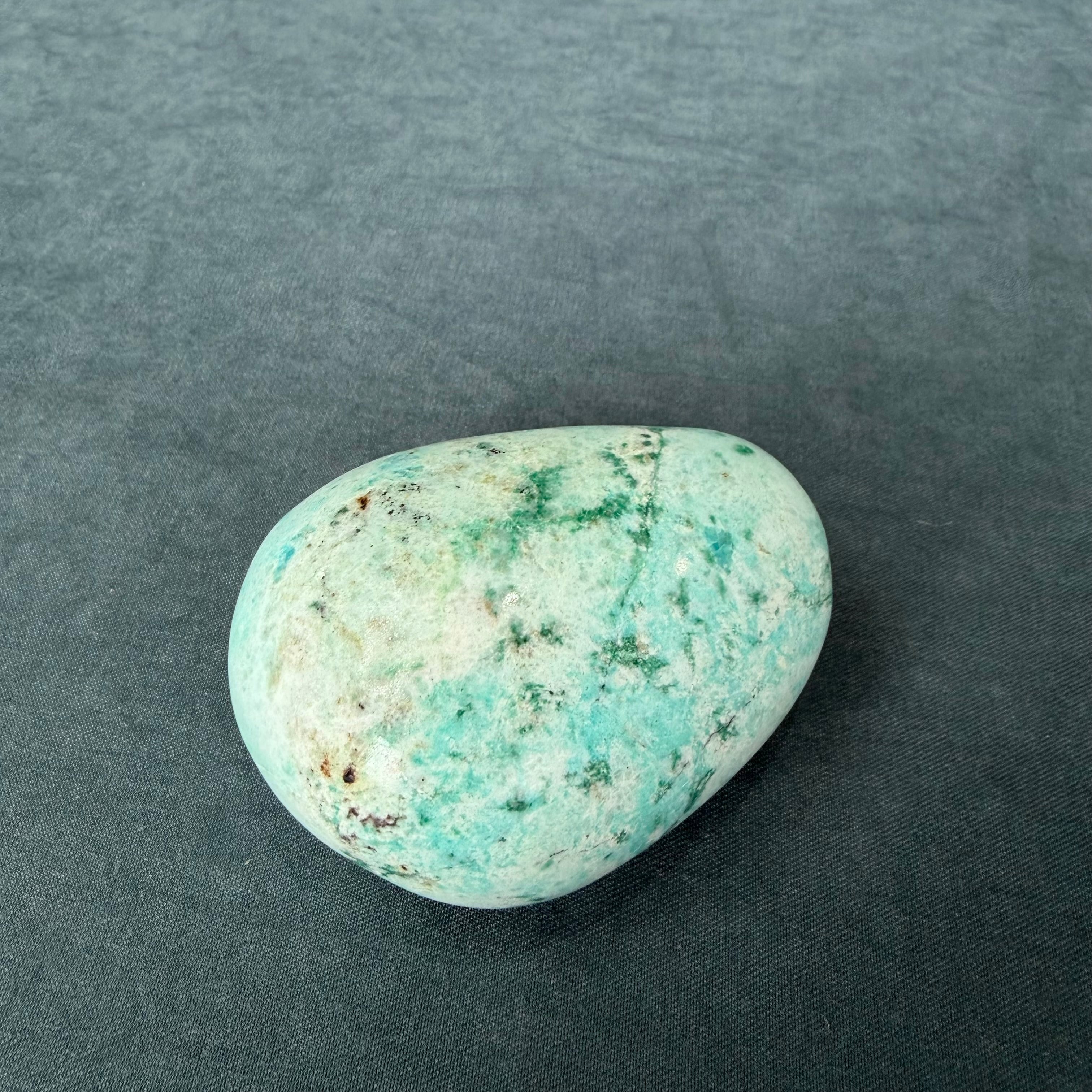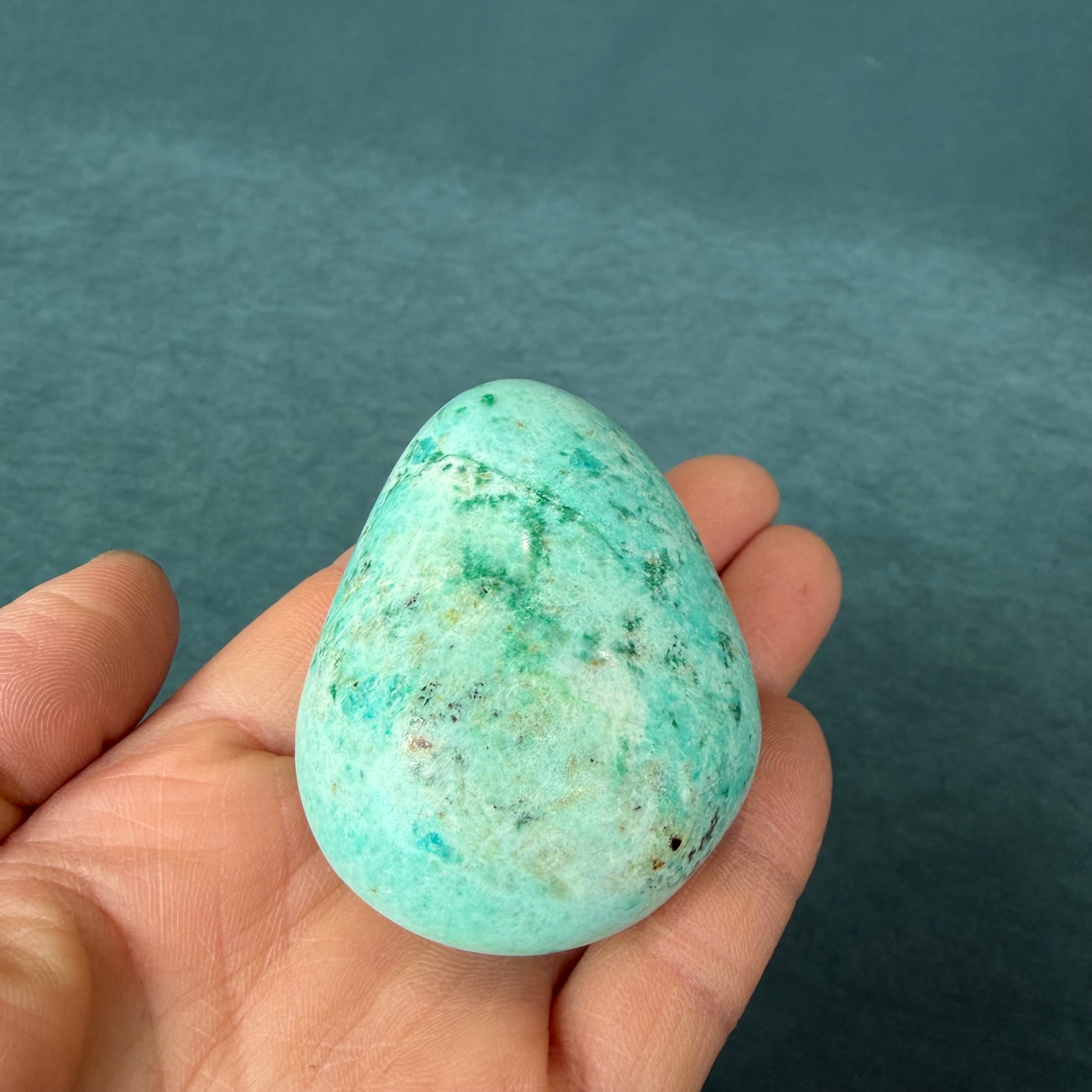 スキャポライトインクリソコラは、スキャポライトとクリソコラの魅力を両方兼ね備えた特別な天然石です。マットな触り心地はサラサラとしており、手に取ると心地よい感触が広がります。瞑想やリラックスタイムに握ることで、心の安定を促す力強いサポートを感じられるでしょう。