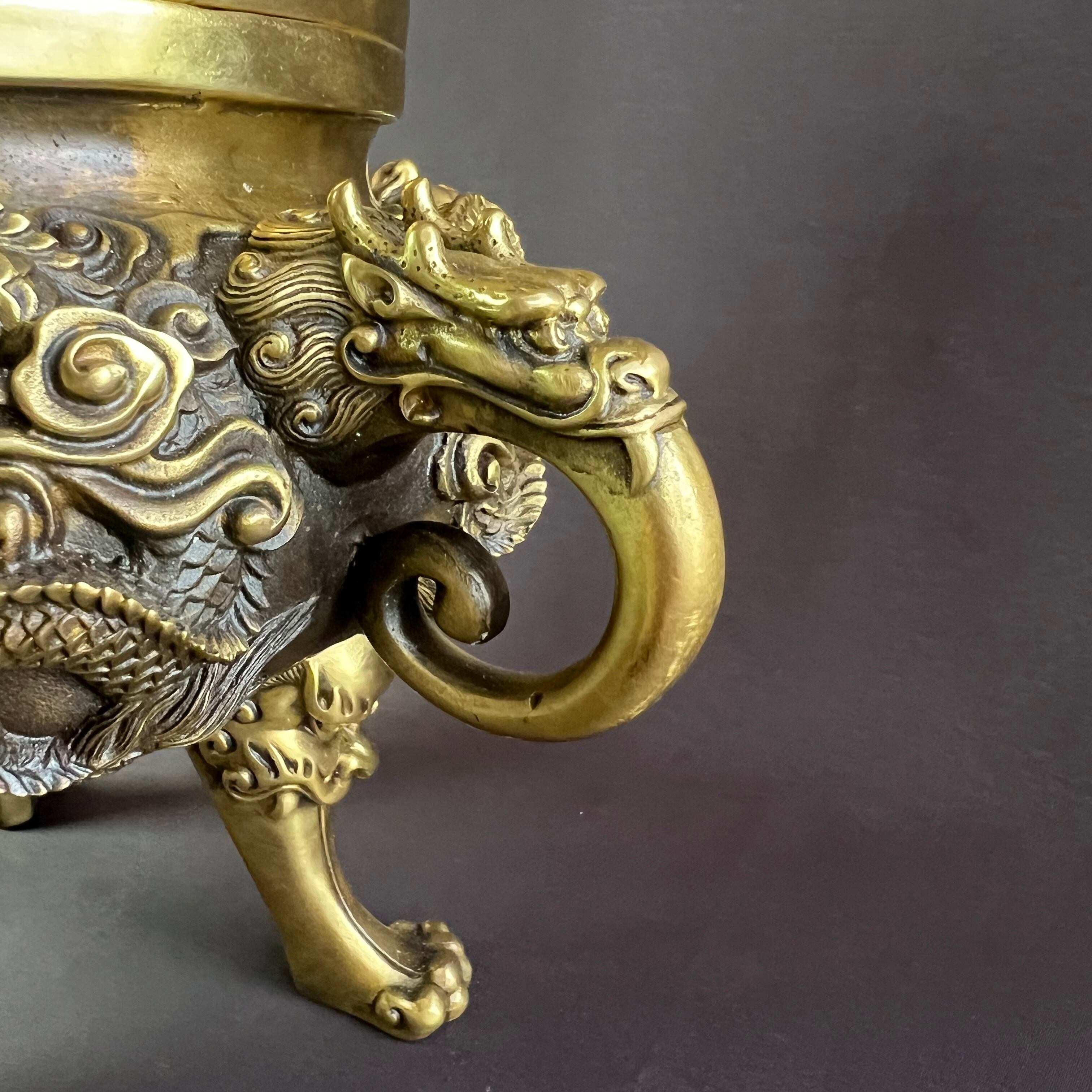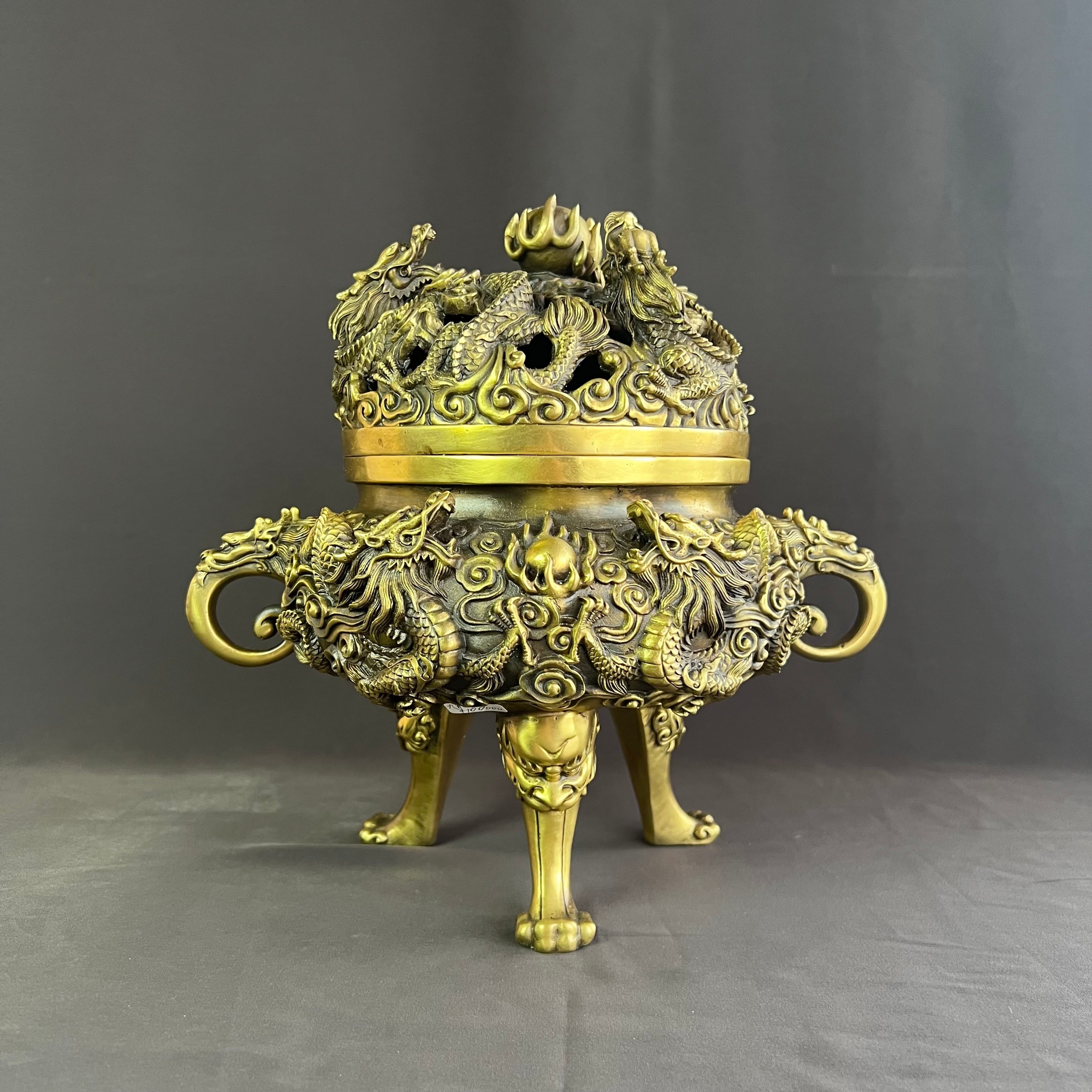 最強の神獣、九龍が活き活きと躍動する黄金の香炉は災厄を消し、