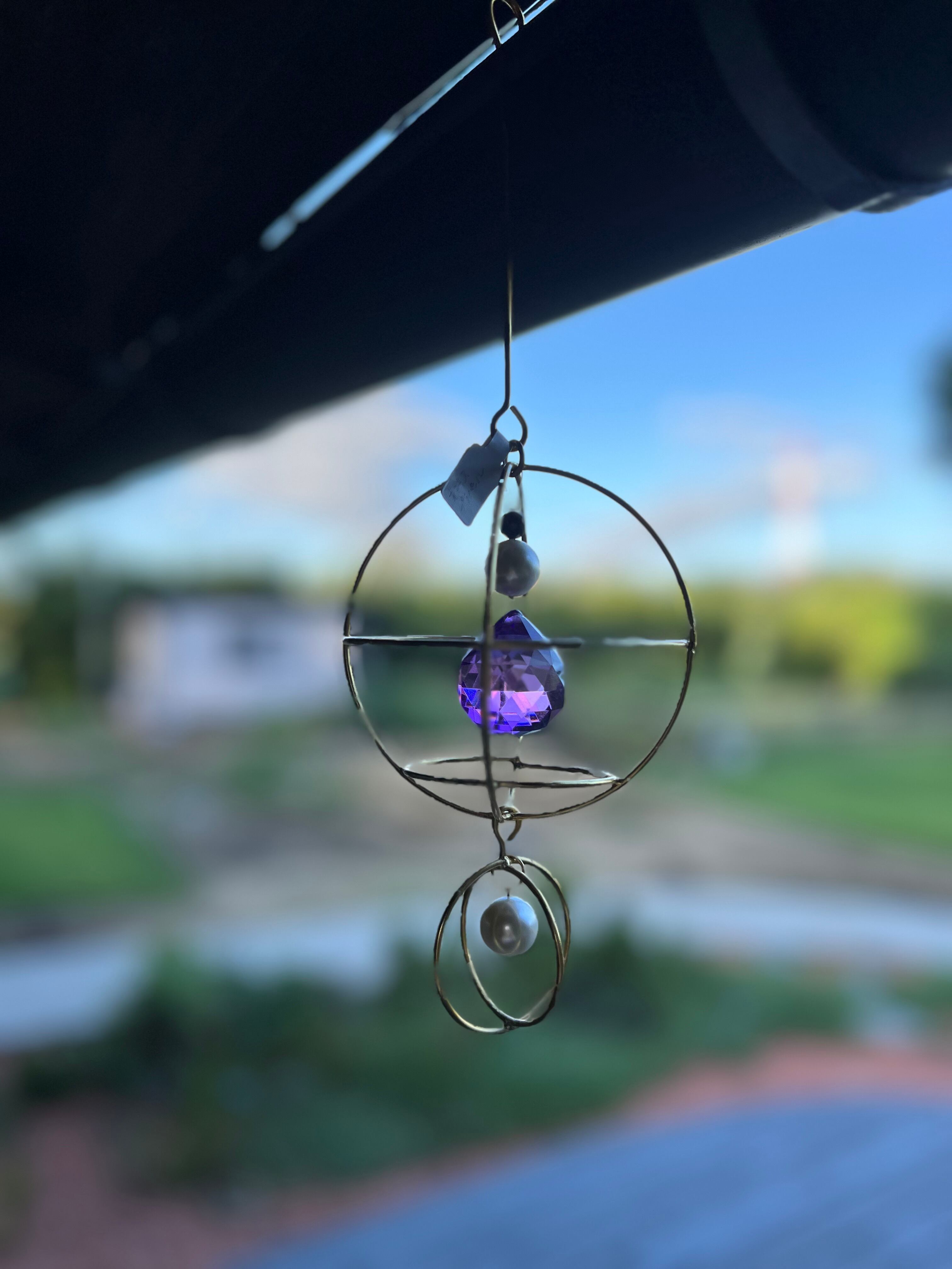 惑星のようなモチーフのサンキャッチャー。