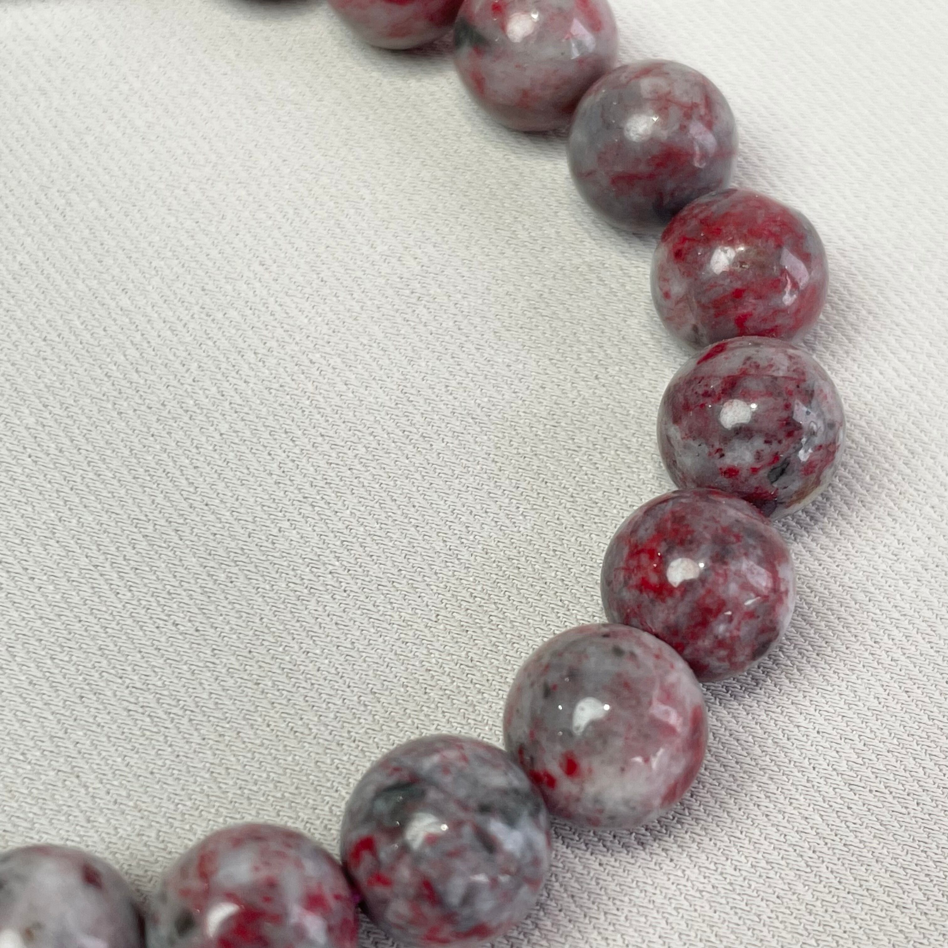 美しいシナバーインクォーツを贅沢に使用したブレスレットです。シナバーインクォーツは、エネルギーを高め、持つ人にポジティブな影響を与えてくれる魅力的な石です。心を落ち着ける力を持ち、意識を高めるサポートをしてくれると言われています。