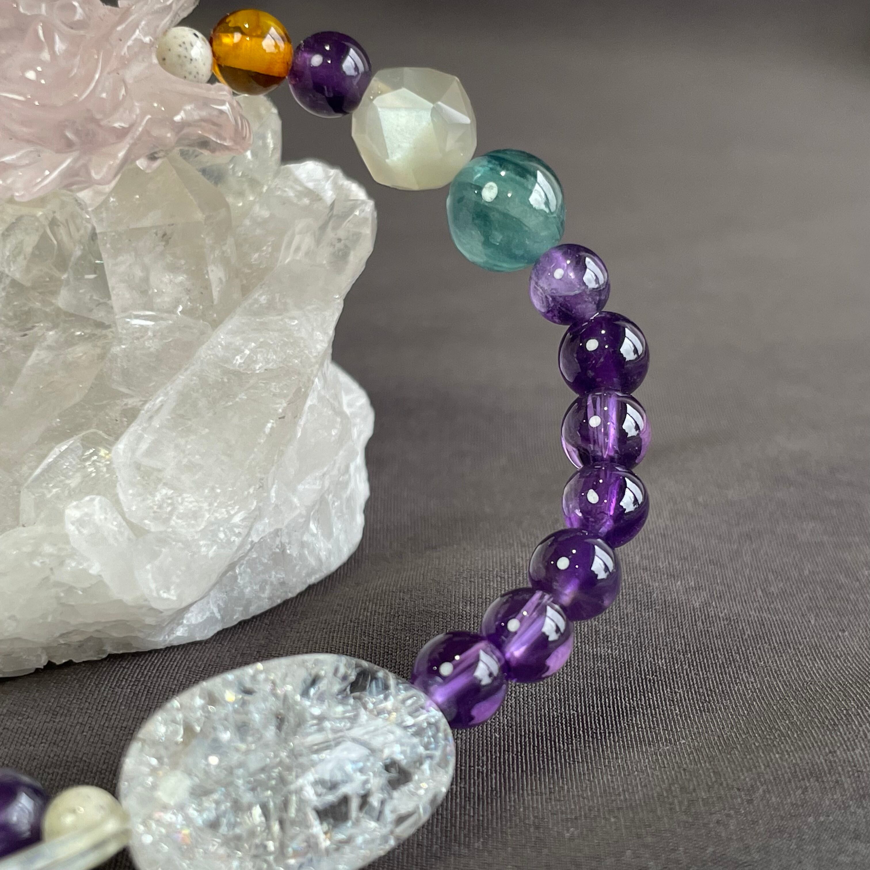 グリーンカイヤナイトとシルバームーンストーンの組み合わせで女性らしさの中に芯の強さを感じさせるブレスレットに仕上げました