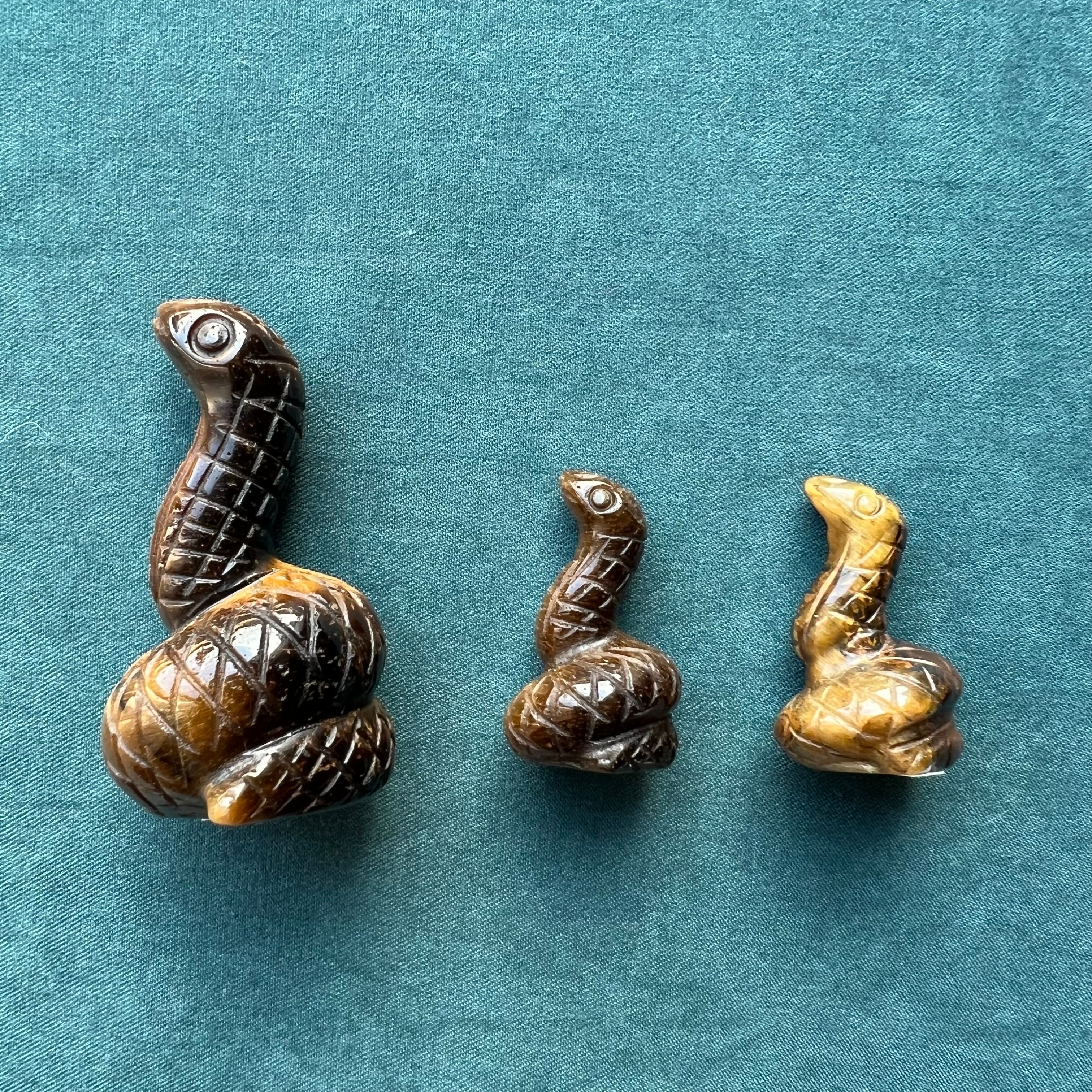 巳置物(タイガーアイ)小は、2025年の干支・巳年のお守りとして特注されています。タイガーアイの深い黄色が美しく輝き、持ち主に様々な幸運と成功をもたらす力を秘めています。この置物をお部屋に飾ることで、開運を促し、心の平穏を得るサポートをいたします!